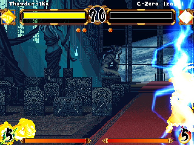強さはこれまでの東方KOFシリーズとくらべて控えめになってるはずです。弱い、ということは無いでしょうが。だいたいウチのナックルズあたりといい試合ができるくらい。