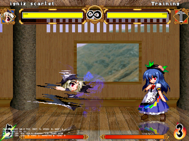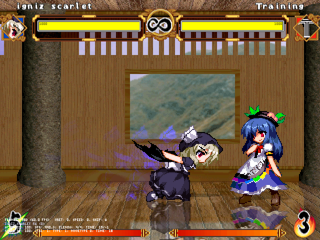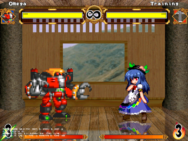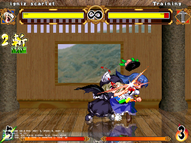 総合力では天子さんのはずですが、またコンボが入りにくいこともあってか結構互角の勝負になります。妖夢の時と言い、こいつ結構愛されボディなのかしら?
