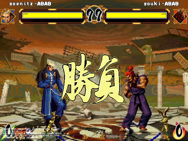 今回更新したダーマと、ゲーニッツと豪鬼はデフォでdisplaynameにABABって付けるようにしました(実は記述自体は前からコメントアウトして入れてたり)。ダーマはコケココ氏のAIもちょくちょく使われてるし、下の二人は・・・まぁついで。