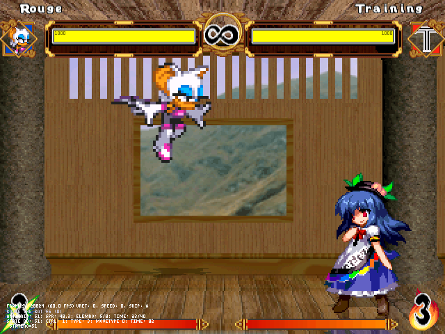 ソニックやナックルズはソニックアドバンスのスプライトも使えるからあまり動作には困らないし、シャドウはスプライト改変しやすいほうだったからモーション少なくてもなんとかなったけど、こいつは多分そうもいかないだろうなーと。