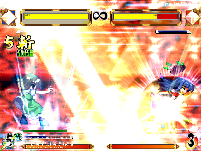 相手の攻撃にあわせてガードすると相手を行動不能にするという、ジャストディフェンス始動の弾きみたいなものです。最初は強すぎるかなーと思っていれないつもりでしたが結局搭載。でも猶予はかなり短くしたつもり(MOVのジャストディフェンスの半分以下)。