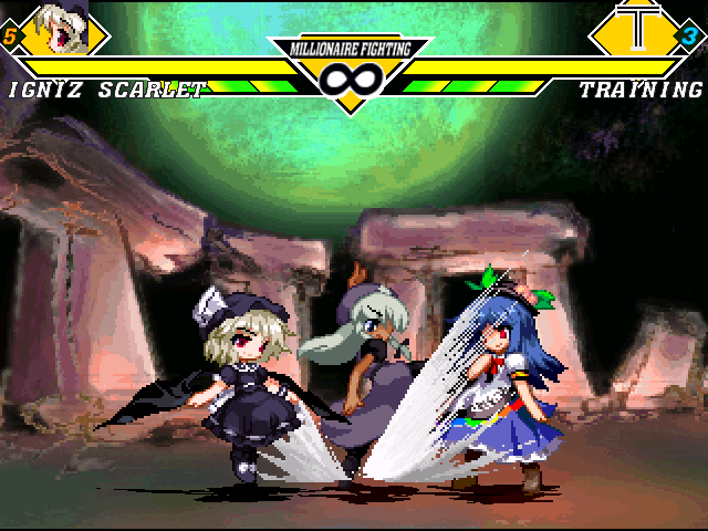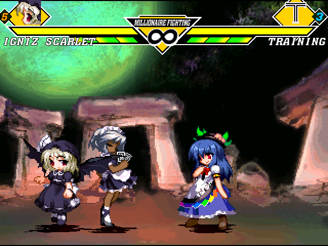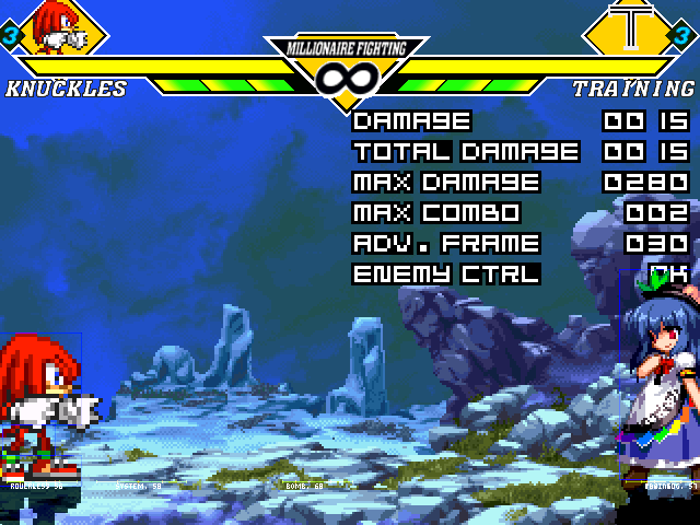 最近の出演動画を見てると、地上ローミングカオス使用時に飛び込まれてフルコン食らって負けるというパターンが多い気がしたので、AIの地上ローミングカオス使用を低レベル時のみに。あとジャンプと各種空中飛び道具の割合を増やしました。前よりは付け入りにくくなったかと。